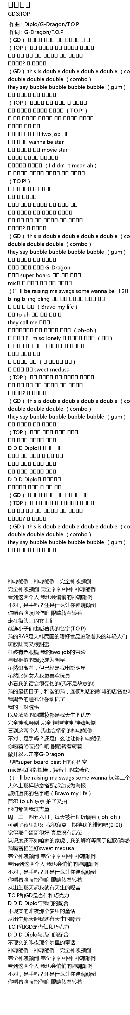 | [00:01.00] | 作词 : G-Dragon/T.O.P |