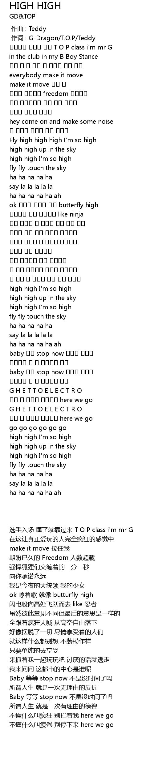 | [00:01.00] | 作词 : G-Dragon/T.O.P/Teddy |