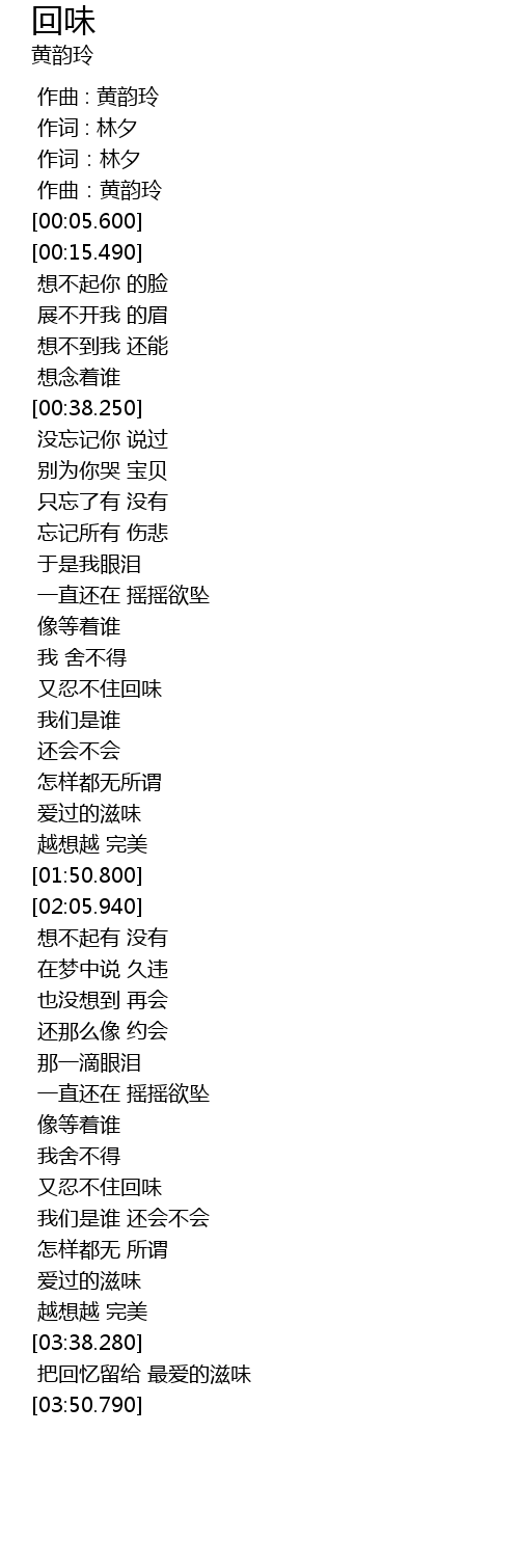 | [00:00.00] | zuò qǔ : huáng yùn líng |