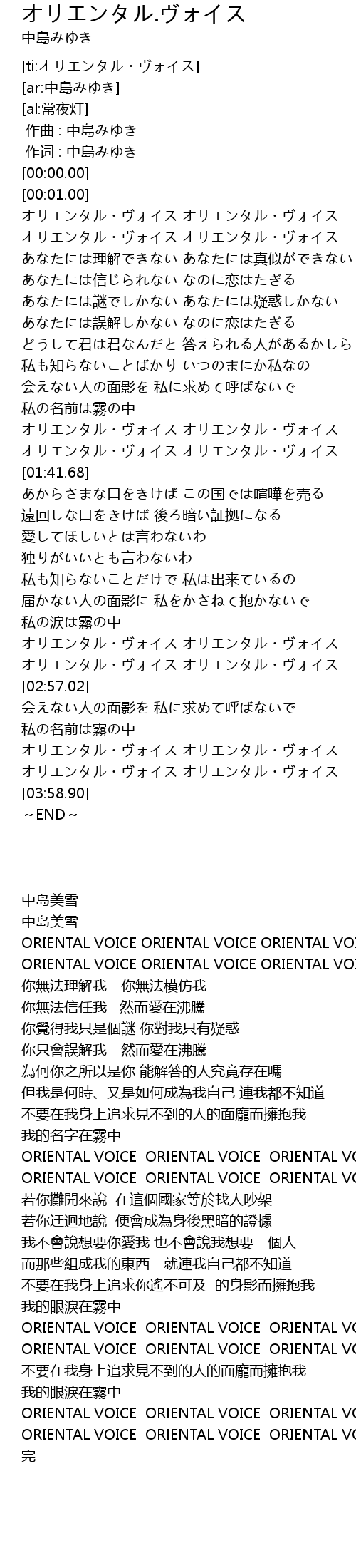 | [02:50.56] | ORIENTAL VOICE ORIENTAL VOICE ORIENTAL VOICE |