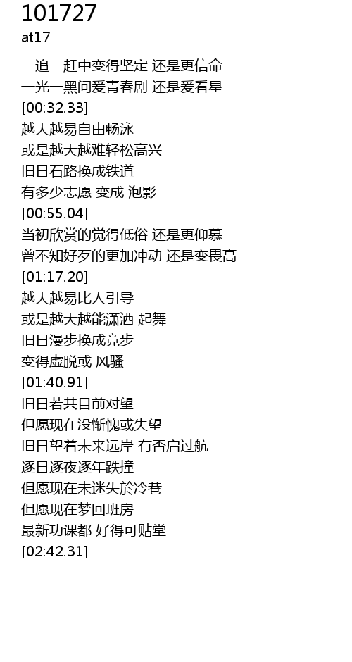 | [00:17.62] | 一追一赶中变得坚定 还是更信命 |