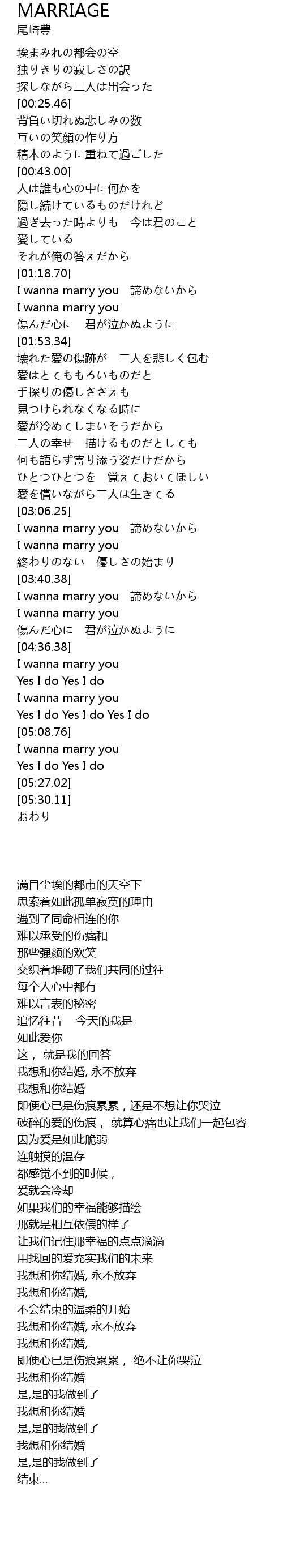 | [04:52.45] | 我想和你结婚 |
