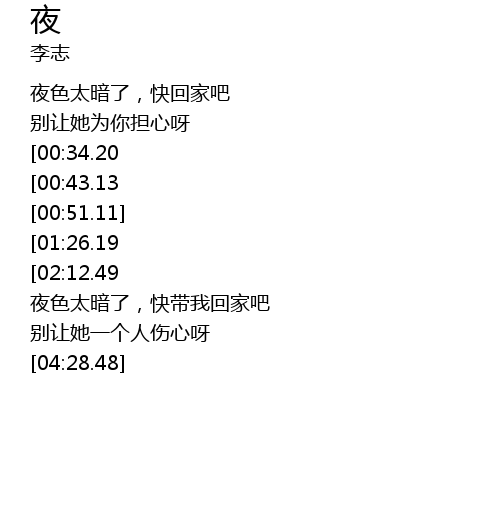 | [03:57.00] | 夜色太暗了,快带我回家吧 |