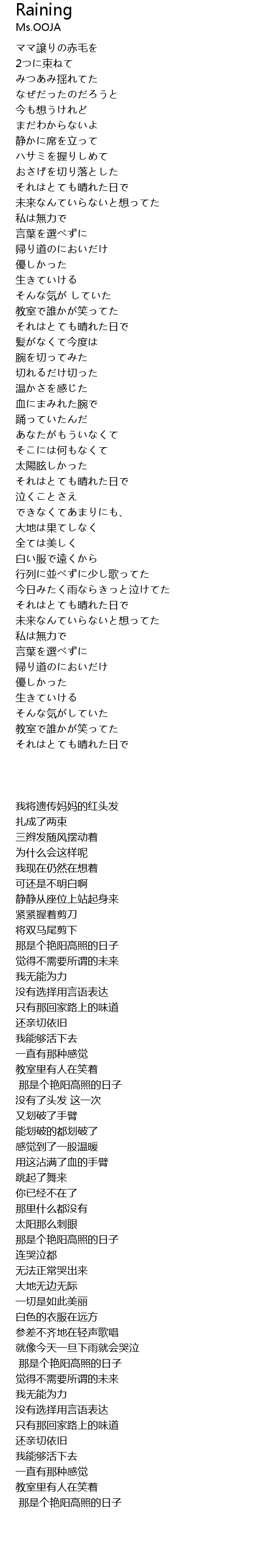 就像今天一旦下雨就会哭泣 |