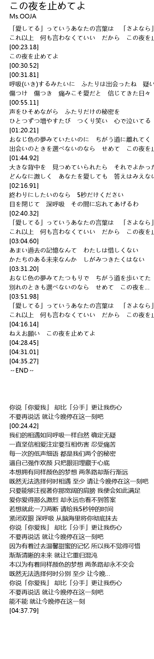 | [04:19.55] | ねえお願い この夜を止めてよ |