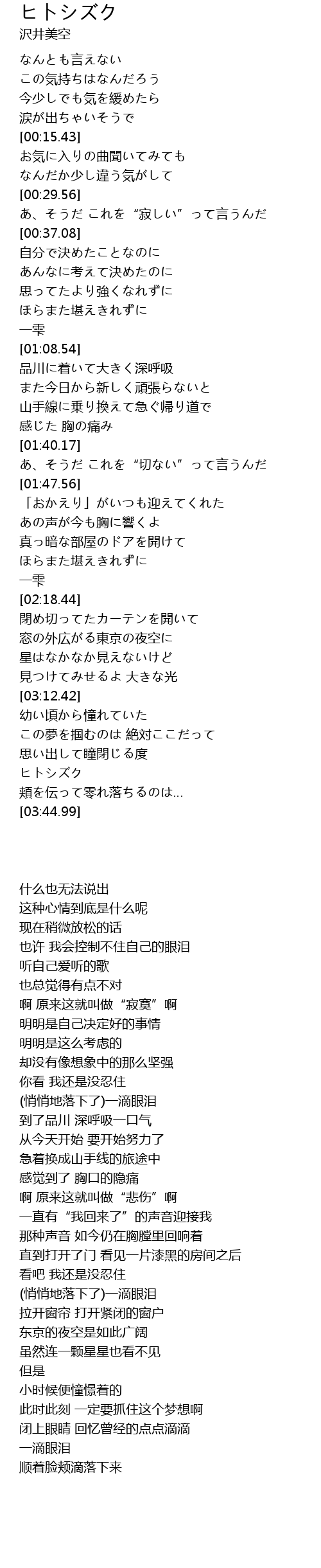 | [00:30.19] | あ、そうだ これを“寂しい”って言うんだ |