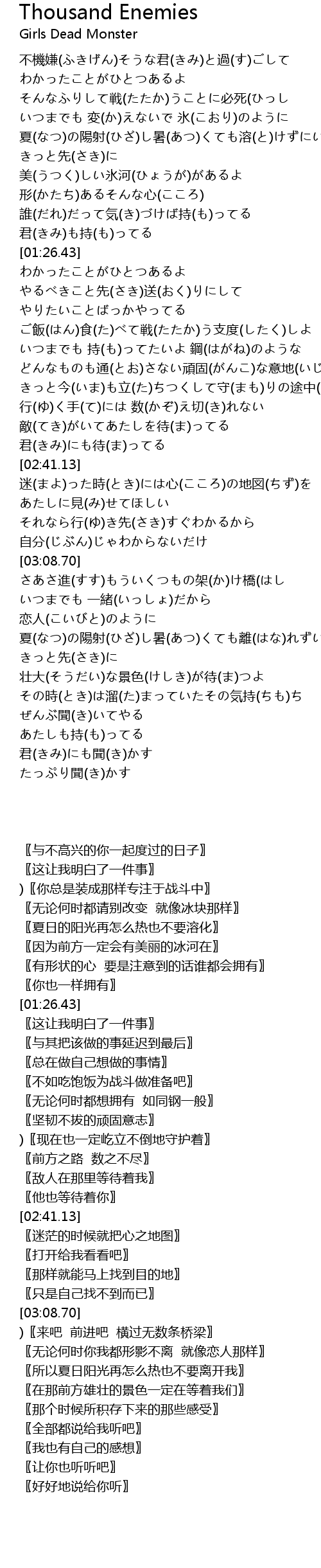 | [02:27.95] | 敵(てき)がいてあたしを待(ま)ってる |