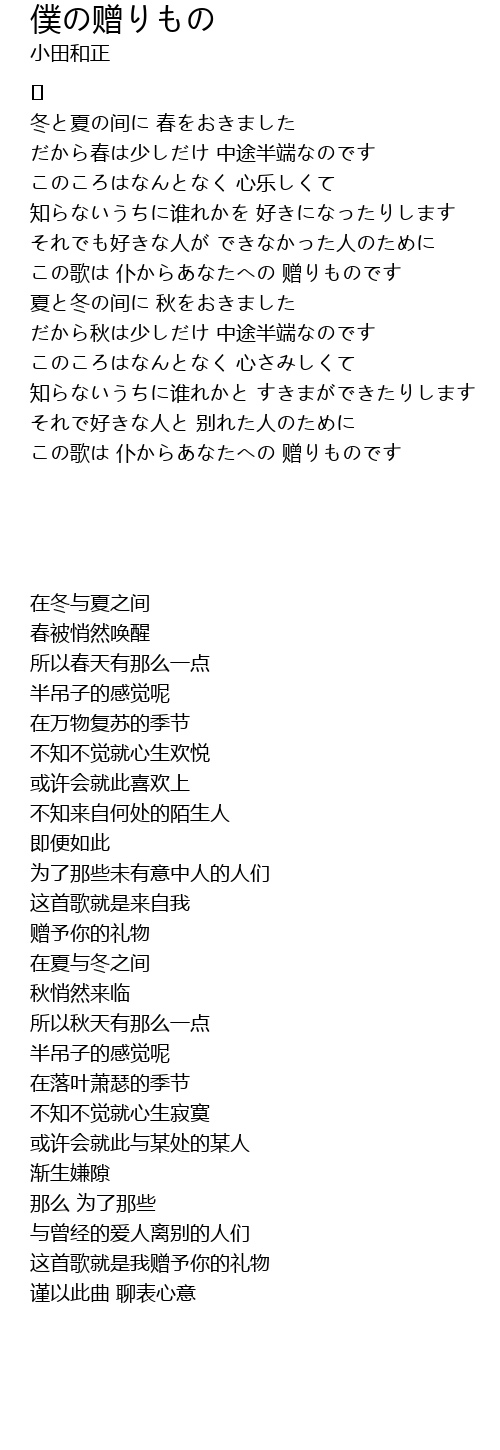 | この歌は 仆からあなたへの 赠りものです | |