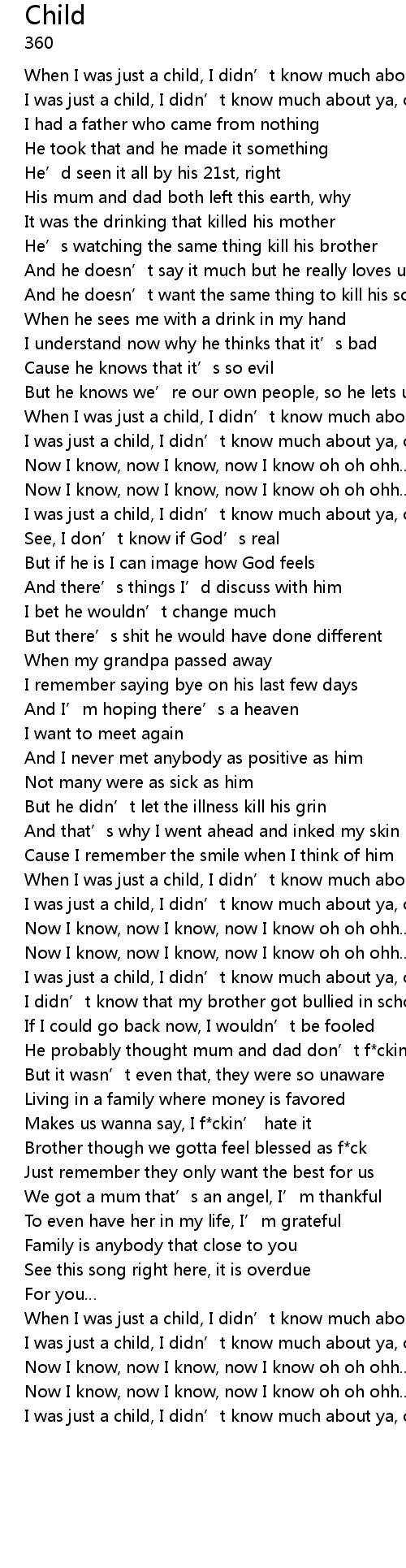 | I was just a child, I didn’t know much about ya, ooh… ooh… | |
