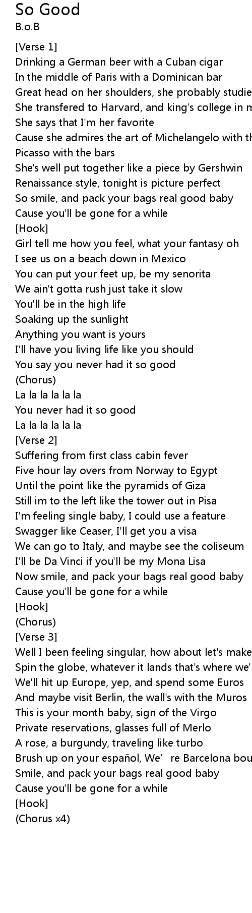 | So smile, and pack your bags real good baby | |