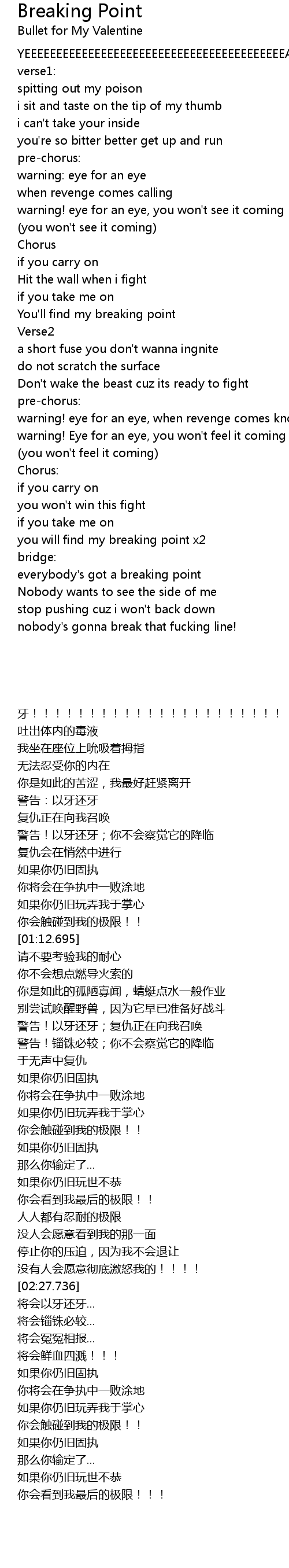 | [01:28.922] | 警告!以牙还牙;复仇正在向我召唤 |