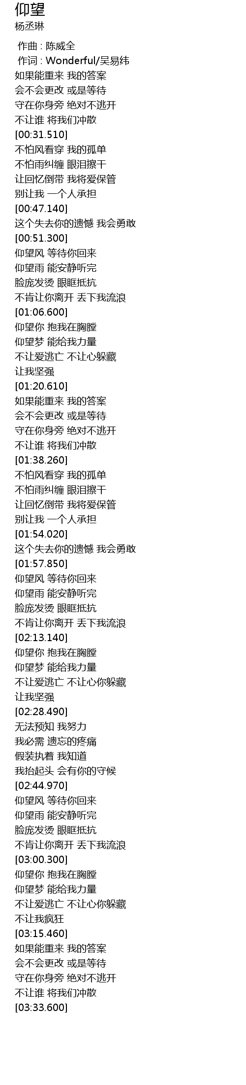 | [03:04.970] | 仰望梦 能给我力量 |