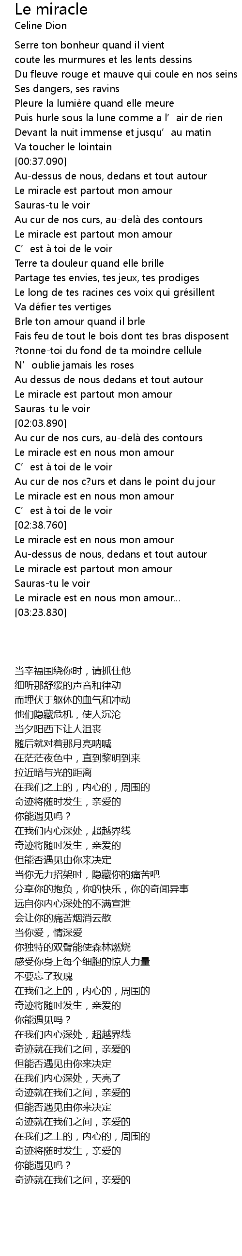 | [03:19.700] | Le miracle est en nous mon amour… |