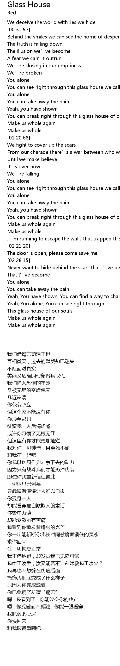 | [01:09.99] | You can break right through this glass house of our souls |