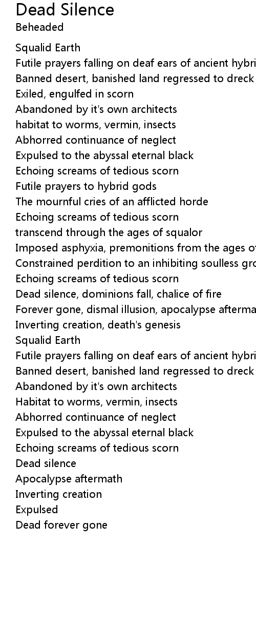 Dead silence, dominions fall, chalice of fire |