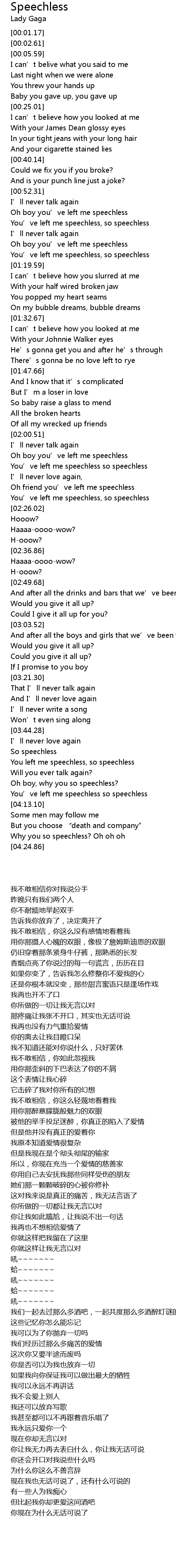 | [02:21.66] | You' ve left me speechless, so speechless |