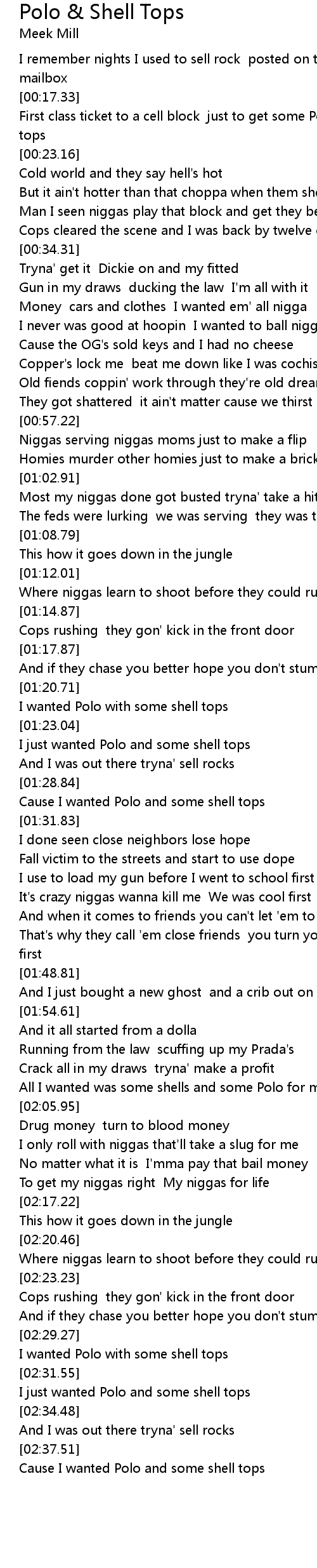 [00:18.23] First class ticket to a cell block just to get some Polo & some shell tops