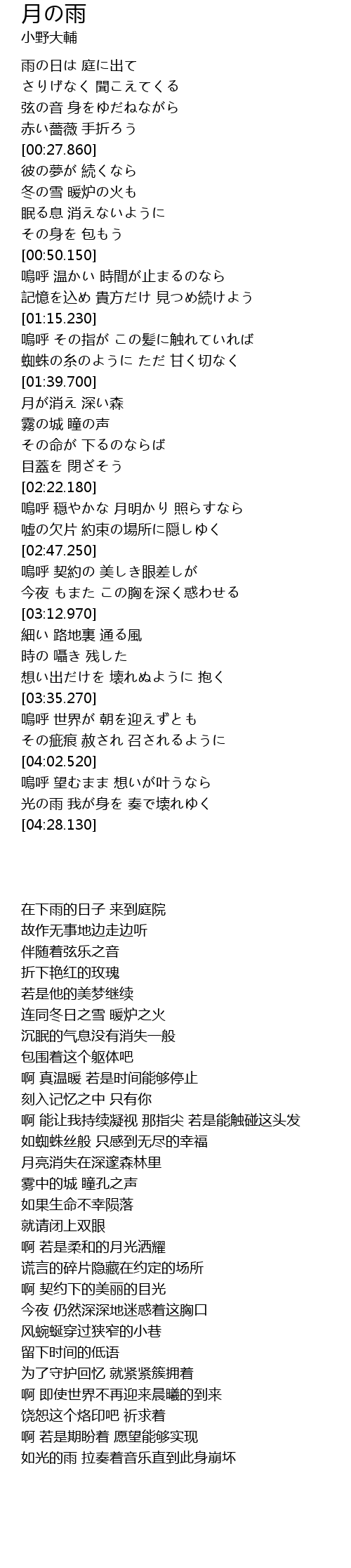 | [04:14.260] | 光の雨 我が身を 奏で壊れゆく |