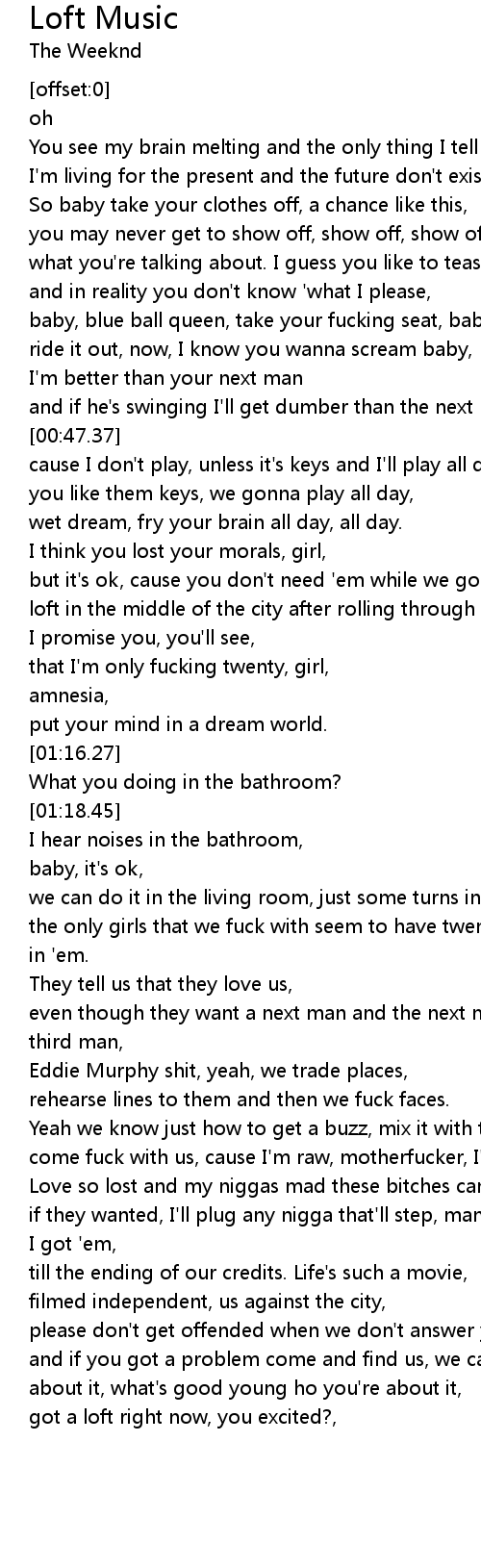but it's ok, cause you don't need 'em while we going in that two floor loft in the middle of the city after rolling through the city with me. |
