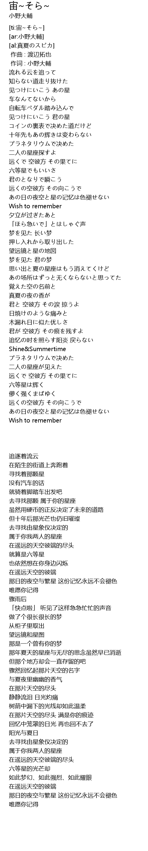 | [01:33.48] | 那日的夜空与繁星 这份记忆永远不会褪色 |