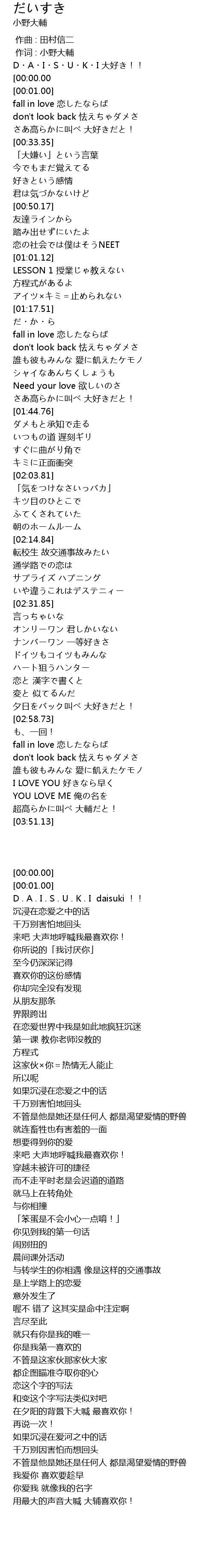 | [00:07.62] | D・A・I・S・U・K・I 大好き!! |