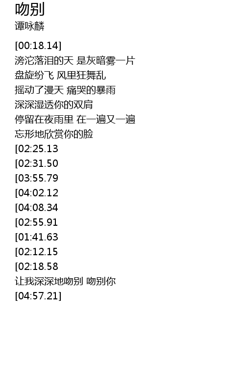 | [04:39.82] | 让我深深地吻别 吻别你 |