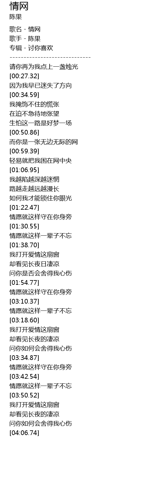 | [00:04.49] | 歌手-陈果 |