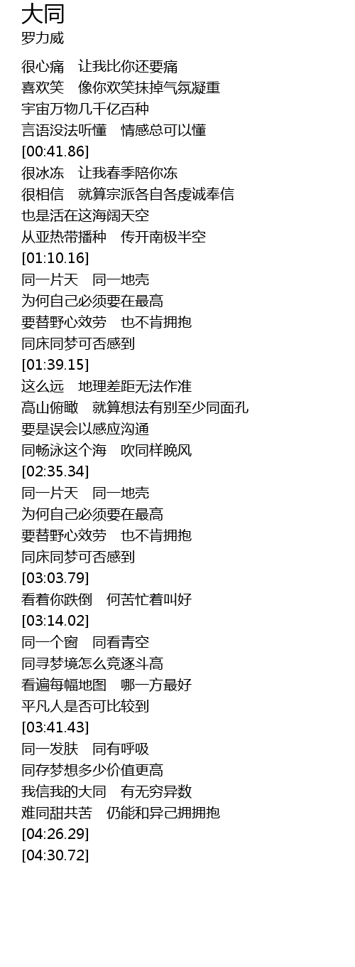 | [04:09.41] | 难同甜共苦 仍能和异己拥拥抱 |