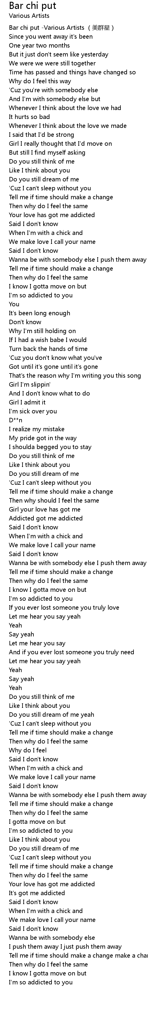 | [00:00.00] | Bar chi put -Various Artists (美群星) |