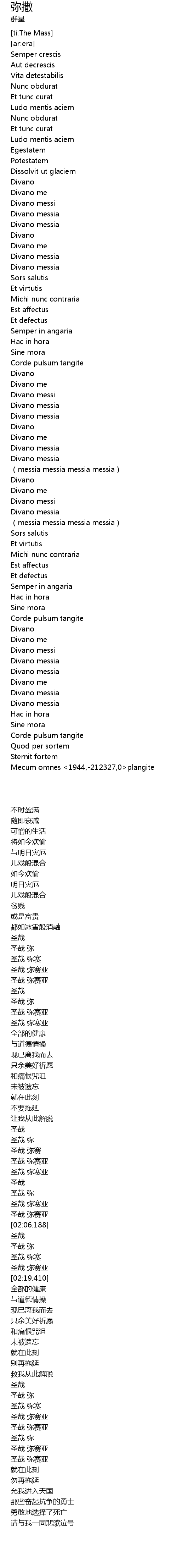 | [03:30.721] | Mecum omnes 1944, 212327, 0 plangite |