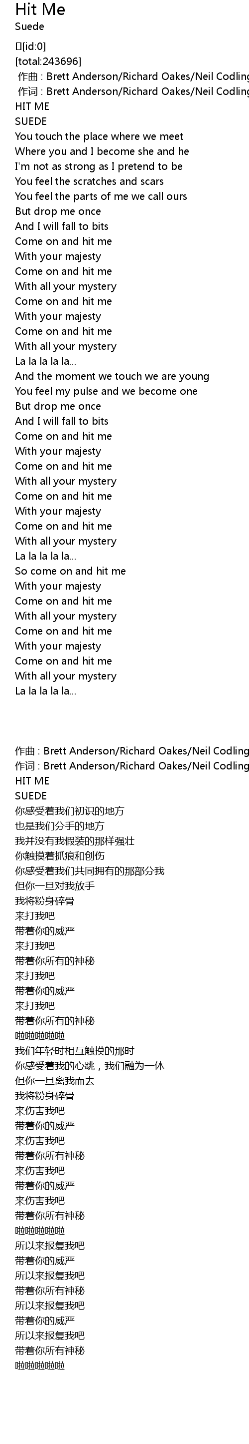 | []作词 : Brett Anderson/Richard Oakes/Neil Codling | |