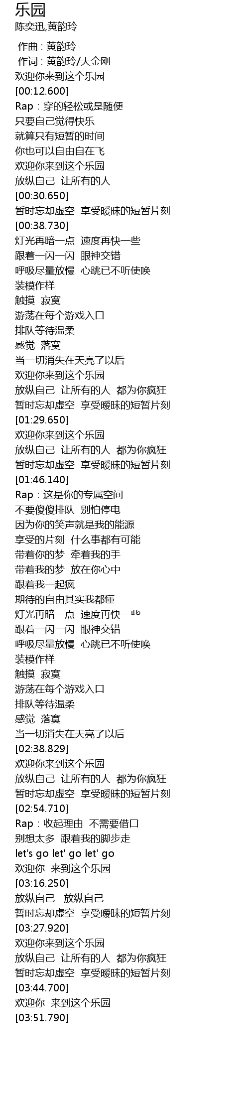 | [00:24.340] | huan ying ni lai dao zhe ge le yuan |