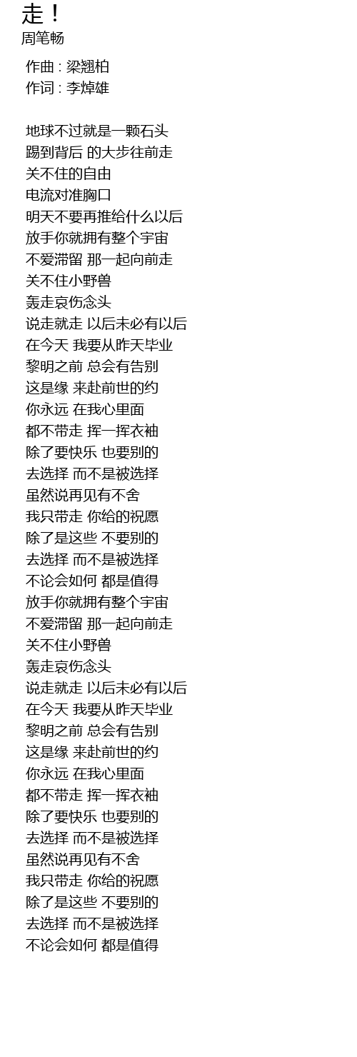 | [00:50.150] | shuō zǒu jiù zǒu yǐ hòu wèi bì yǒu yǐ hòu |