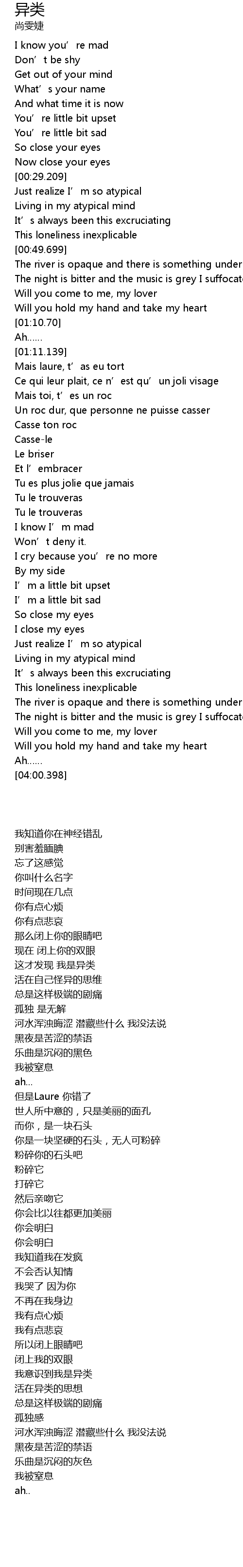 | [02:27.390] | 我意识到我是异类 |