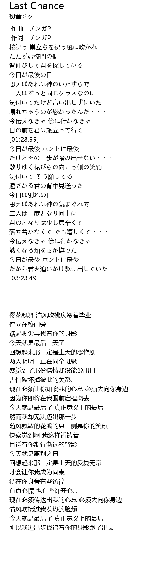 | [03:03.80] | 今日が最後 ホントに最後 |