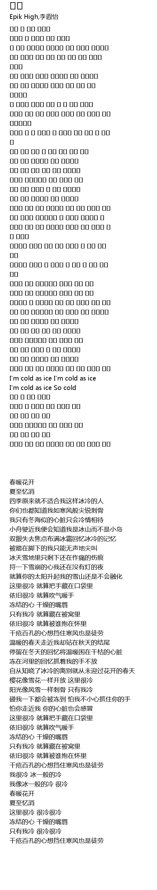| [00:34.650] | 난 원래 사계절이 어울리지 않아 차가운 아이잖아 |