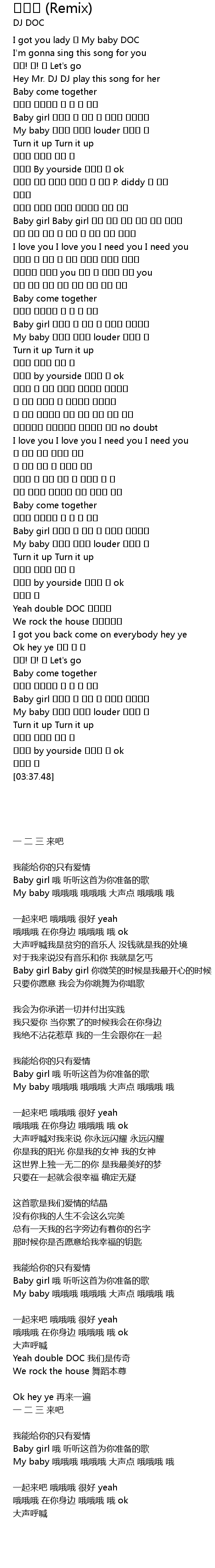 | [00:07.48] | I got you lady 예 My baby DOC |