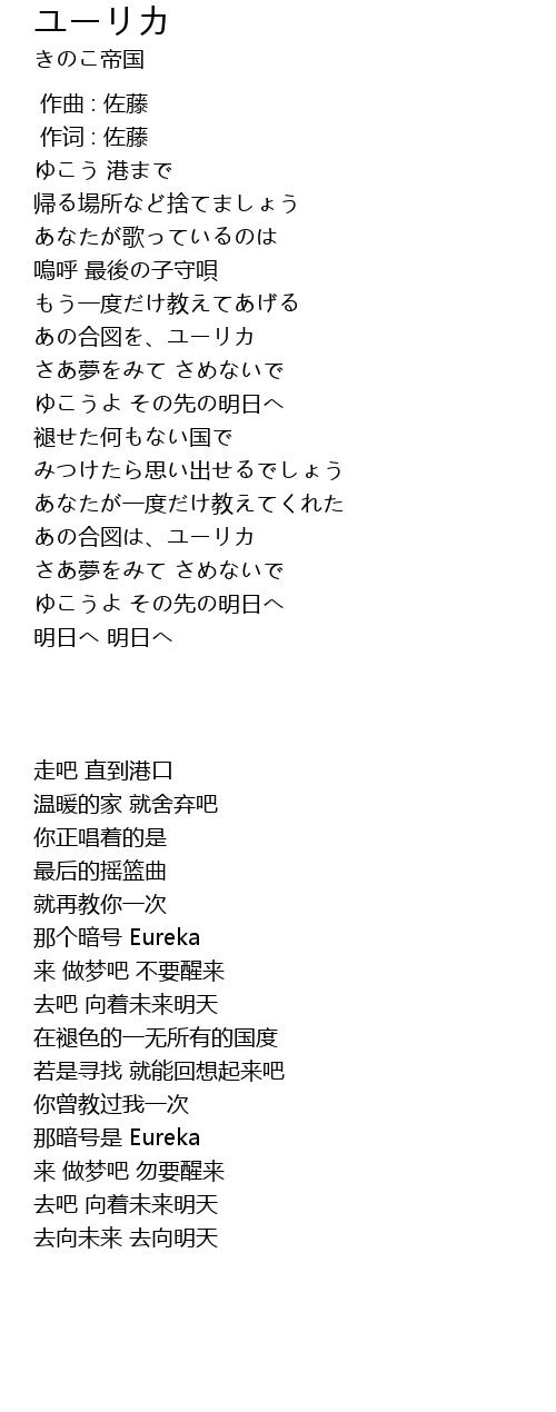 | [01:26.64] | あの合図を、ユーリカ |