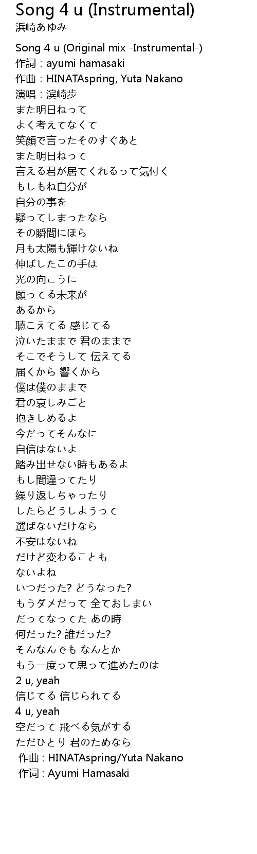 | [00:00.00] | 作词 : Ayumi Hamasaki |