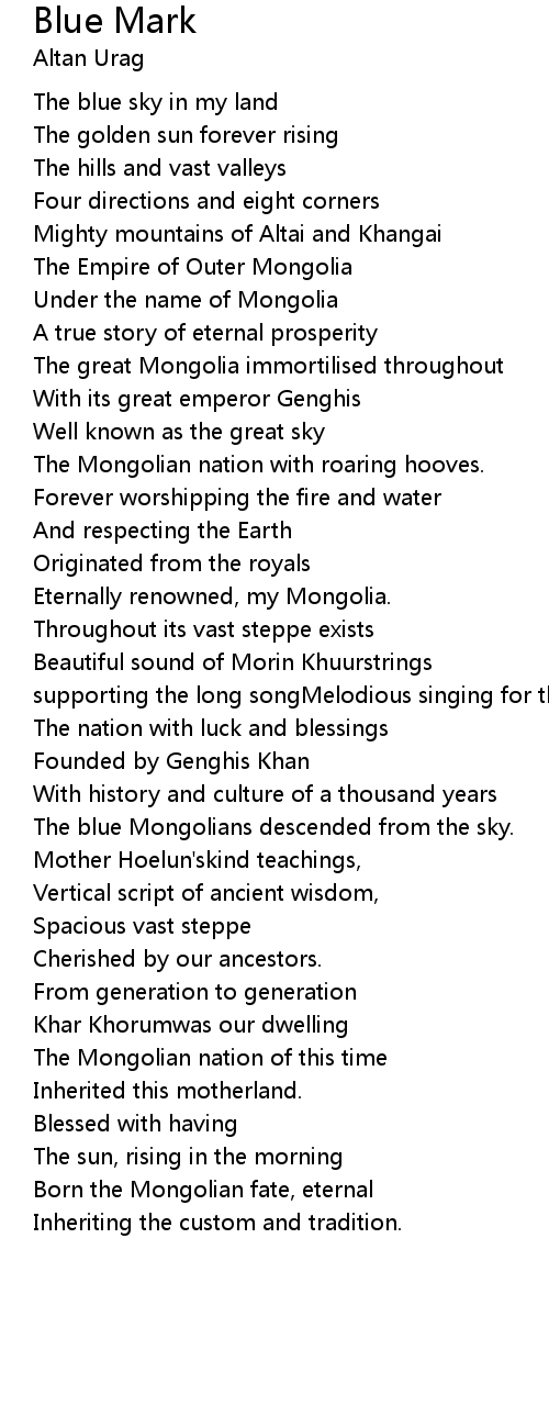 Eternally renowned, my Mongolia.