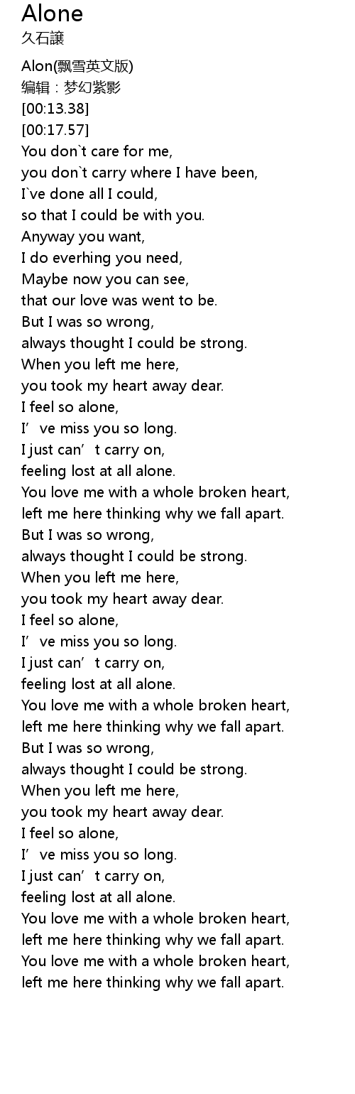 | [01:56.88] | feeling lost at all alone. |