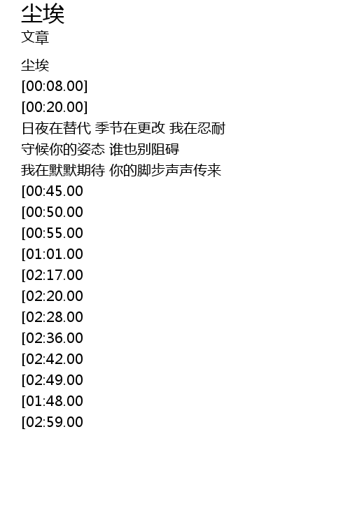 | [03:25.00][02:17.00][01:06.00] | 爱你的心是尘埃 |