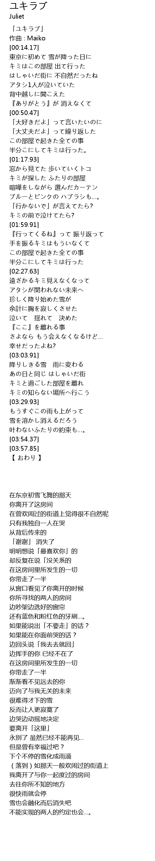 | [00:01.17] | 「ユキラブ」 |