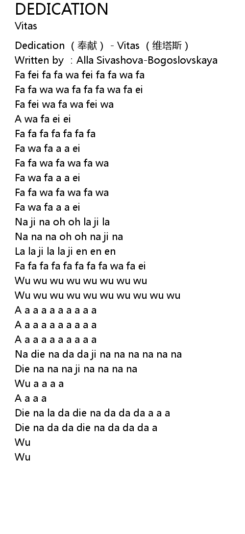 | [00:00.313] | Dedication feng xian Vitas wei ta si |