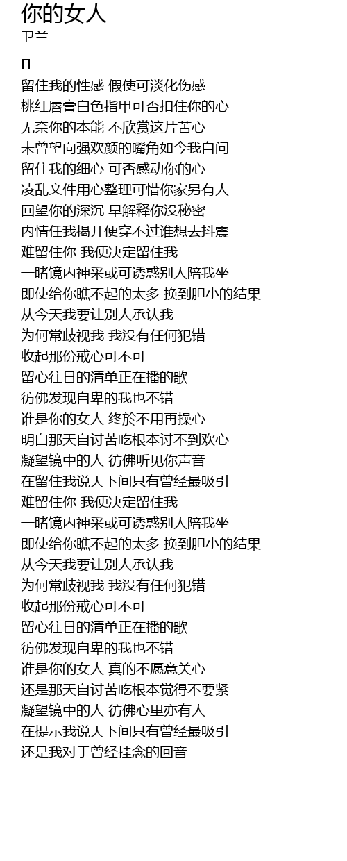 | [03:19.278] | 谁是你的女人 真的不愿意关心 |