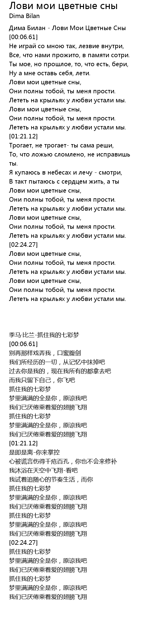 | [00:00.00] | Дима Билан - Лови Мои Цветные Сны |