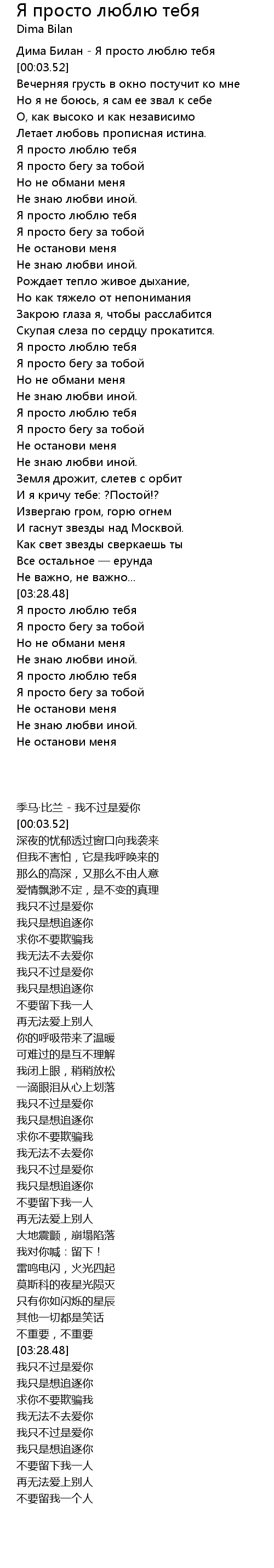 | [00:00.91] | Дима Билан - Я просто люблю тебя |