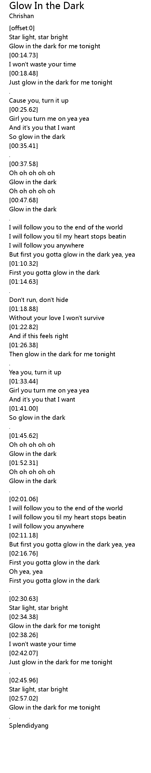 | [01:55.93] | Glow in the dark |