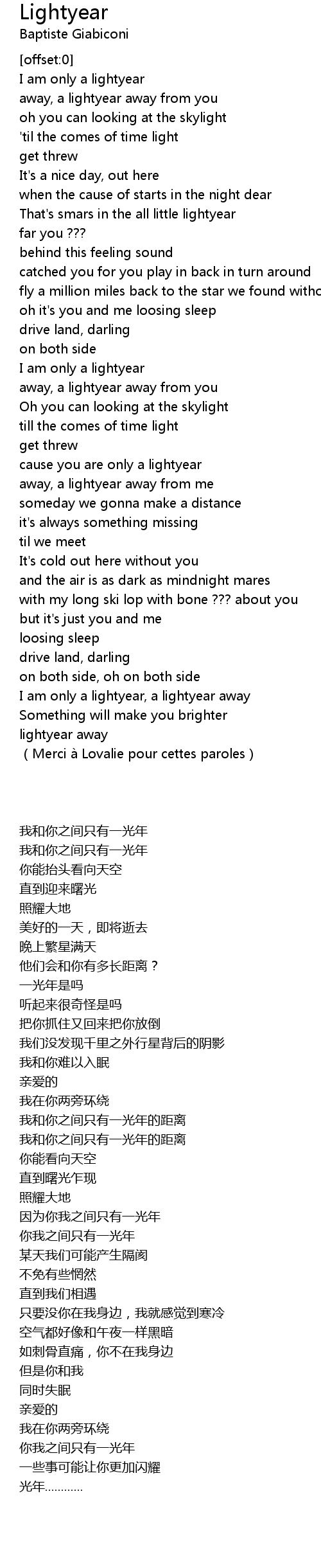 | [01:55.11] | I am only a lightyear, a lightyear away |