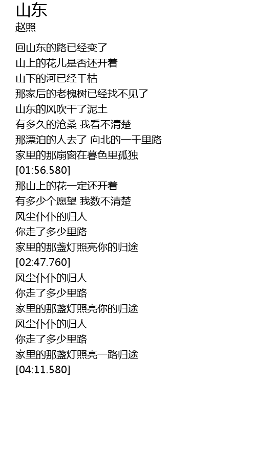 | [00:40.330] | 回山东的路已经变了 |